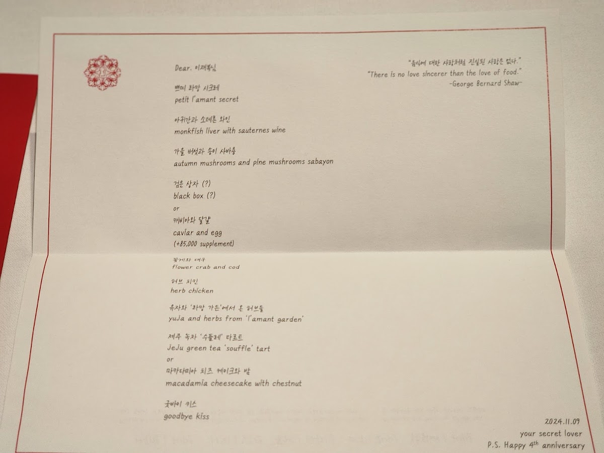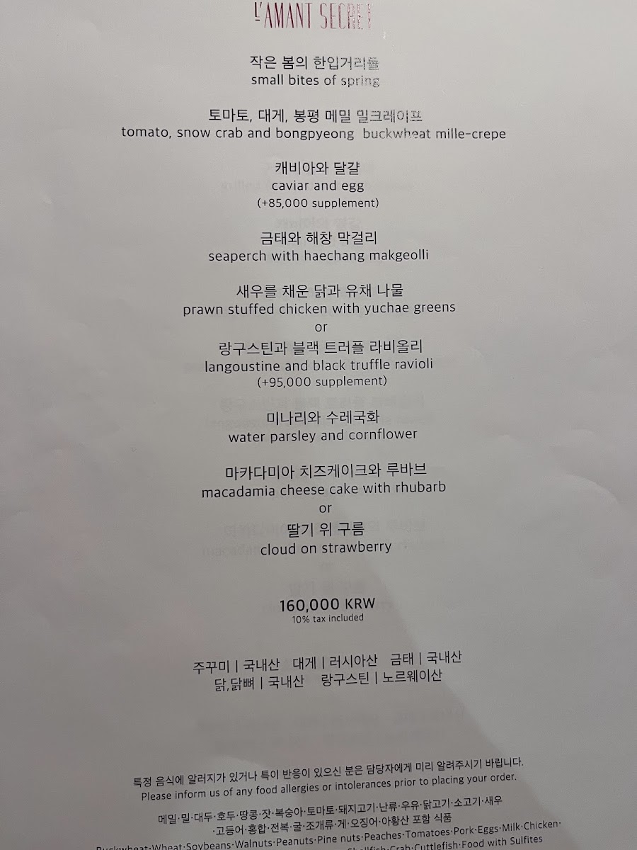 The menu at L’Amant Secret presents a refined approach to Western dining, crafted to complement its intimate and elegant setting. It centers around thoughtfully composed multi-course meals that invite diners to savor each dish at a measured, contemplative pace.